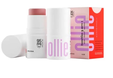 Bastão 3 em 1 blush batom e sombra ollie fps95 rosa 4,5g - OLLIE